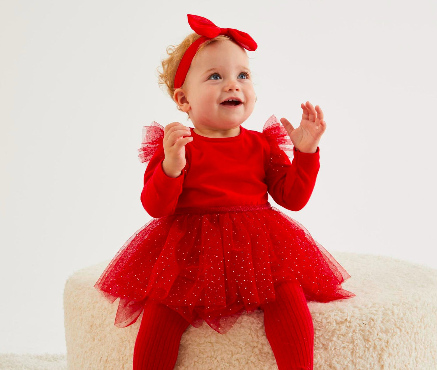HeartGlow – Red Mesh Tutu Dress with Embroidered Hearts & Bow for Baby Girls